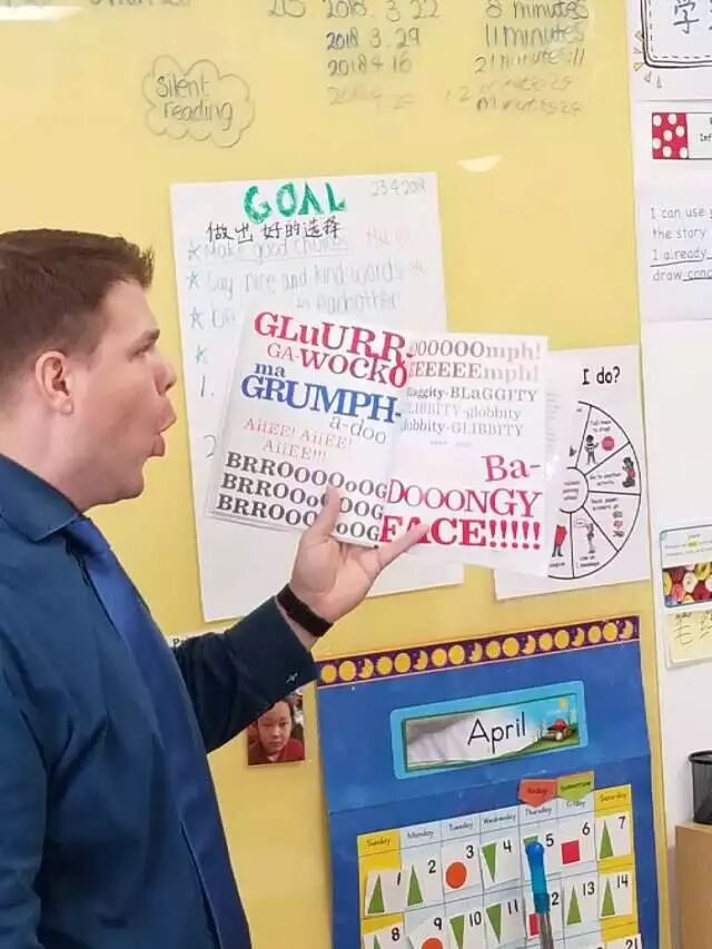 星期二,家长志愿者们来到学校为小学部学生们讲故事。