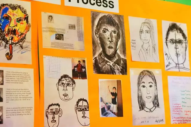 但是对于学生来说,立刻让他们进行自画像肯定不是一个容易的任务。在视觉艺术老师Kevin Watson的指导下,学生们经历了一个有条理和有指导性的自画像过程: